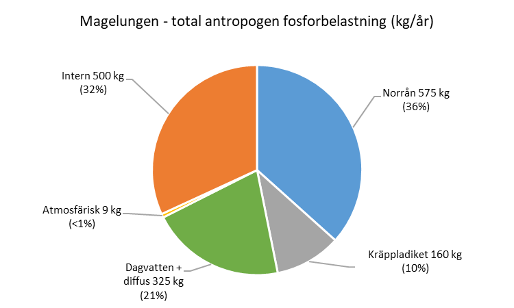 Internbelastningen av fosfor är betydande i Magelungen och beräknas bidra med ungefär en tredjedel av den totala fosforbelastningen orsakad av människan. Den är ett resultat av att den externa fosforbelastningen varit förhöjd under en lång tidsperiod vilket gjort att stora mängder fosfor finns lagrat i Magelungens sediment. Under syrefria förhållanden frigörs fosforn till vattenmassan och bidrar därmed till övergödningen.