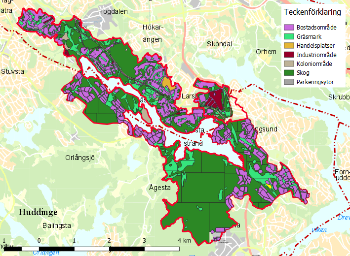 Inom avrinningsområdet finns felkopplade avlopp och läckande avloppsledningar som bidrar till fosforbelastningen. Här finns även enskilda avlopp. Dessa är främst koncentrerade till så kallade omvandlingsområden, det vill säga äldre fritidshusområden där folk börjat bosätta sig permanent, i Huddinge kommun.