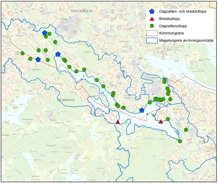 En av de viktigaste orsakerna till att Magelungen inte når god vattenstatus är att stora ytor hårdgjorts inom avrinningsområdet och även uppströms sjön. Dagvattnet är ett transportmedium för föroreningar och om den naturliga filtreringen och fördröjningen av vattnet inte sker på grund av hårdgjorda ytor transporteras fosfor och miljögifter direkt till sjön.